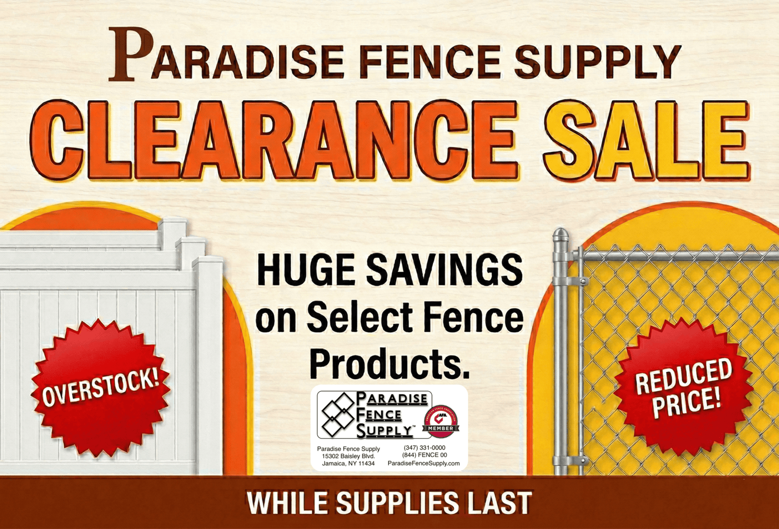| Phone: (347) 331-0000 | Online: ParadiseFenceSupply.com | Copyright ©️ 2026 Paradise Fence Supply | All Rights Reserved | Showroom: 15302 Baisley Blvd., Jamaica, NY 11434 |